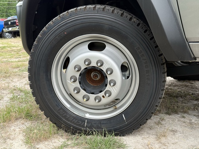 - 19.5 x 6-inch front and dual rear argent steel wheels