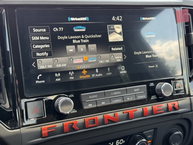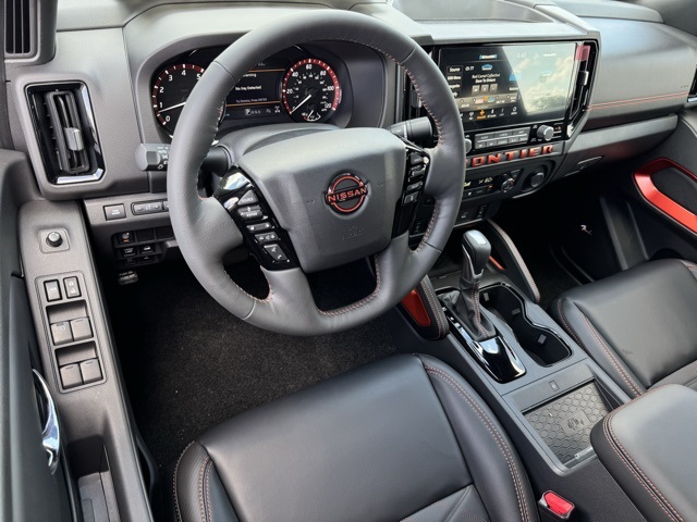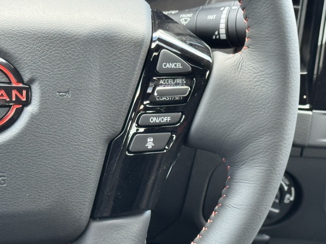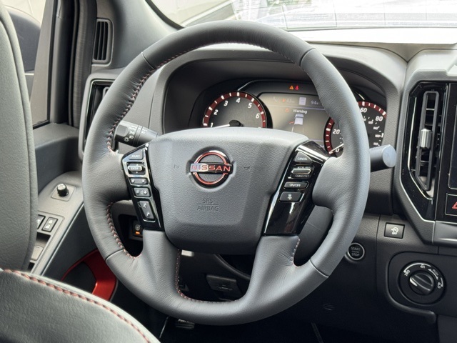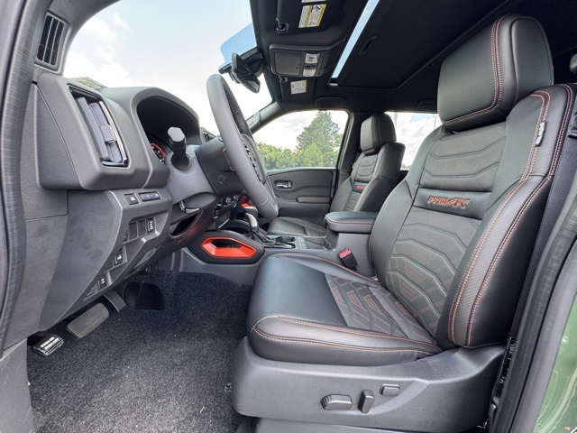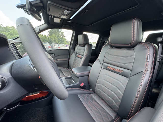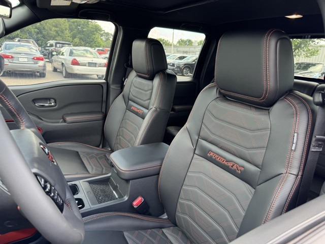 PRO Convenience Package (Bed Under-Rail Lighting, Heated Front Seats, Heated Outside Mirrors, Heated Steering Wheel, Intelligent Around View Monitor (I-AVM), Spray-In Bedliner, Trailer Hitch w/Wiring Harness, and Wireless Charging for Personal Devices), PRO Premium Package (Auto-Dimming Mirror, Auto-Tilt & Slide Sunroof w/Manual Shade, Fender Premium Audio System w/10 Speakers, HomeLink UGDO, Leather Seat Trim, Nissan Door-to-Door Navigation, Partial Under-Seat Storage Delete, and Traffic Sign Recognition (TSR)), Tow Package (T11) (DISC), 17" Painted Alloy Wheels, 2-Tone Beadlock Style Wheel Accessory, 3.692 Axle Ratio, 4-Wheel Disc Brakes, 6 Speakers, ABS brakes, Air Conditioning, Alloy wheels, AM/FM radio: SiriusXM, Antenna Update, Anti-whiplash front head restraints, Auto High-beam Headlights, Automatic temperature control, Blind Spot Warning, Brake assist, Bumpers: body-color, Delay-off headlights, Driver door bin, Driver vanity mirror, Dual front impact airbags, Dual front side impact airbags, Electronic Stability Control, Electronic Tailgate Lock, Emergency communication system, Essentials Kit, Front anti-roll bar, Front Bucket Seats, Front Center Armrest, Front dual zone A/C, Front fog lights, Front reading lights, Front wheel independent suspension, Fully automatic headlights, Illuminated entry, Knee airbag, Leather Shift Knob, Leather steering wheel, Low tire pressure warning, Mud Flap Accessory, Occupant sensing airbag, Off-Road Style Step Rails, Overhead airbag, Overhead console, Panic alarm, Passenger door bin, Passenger vanity mirror, Power door mirrors, Power driver seat, Power passenger seat, Power steering, Power windows, Premium Paint, PRO Embroidered Premium Cloth Seat Trim, PRO-4X Carpeted Floor Mats (DISC), Radio data system, Radio: SXM/AM/FM/AUX/USB Audio System, Rear anti-roll bar, Rear seat center armrest, Rear side impact airbag, Rear step bumper, Remote keyless entry, Security system, Speed control, Speed-sensing steering, Split folding rear seat, Steering wheel mounted audio controls, Tachometer, Telescoping steering wheel, Tilt steering wheel, Traction control, Trip computer, USB Charging Cable Kit, Variably intermittent wipers, Voltmeter, and Wireless Apple CarPlay/Wireless Android Auto. Price includes dealer added accessories.