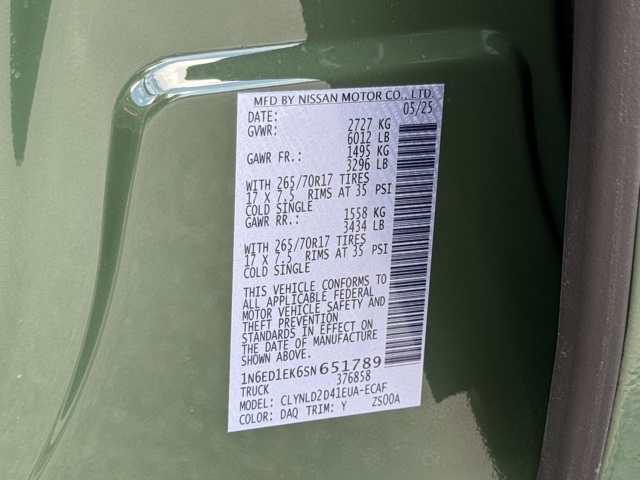 Tactical Green Metallic 2025 Nissan Frontier PRO-4X 4WD 9-Speed Automatic with Overdrive 3.8L DI DOHC 24V V6 This Vehicle qualifies for Complimentary 10 YEARS or 250,000 MILE LIMITED POWER TRAIN WARRANTY. HUGE VALUE! Visit dealer for complete details.