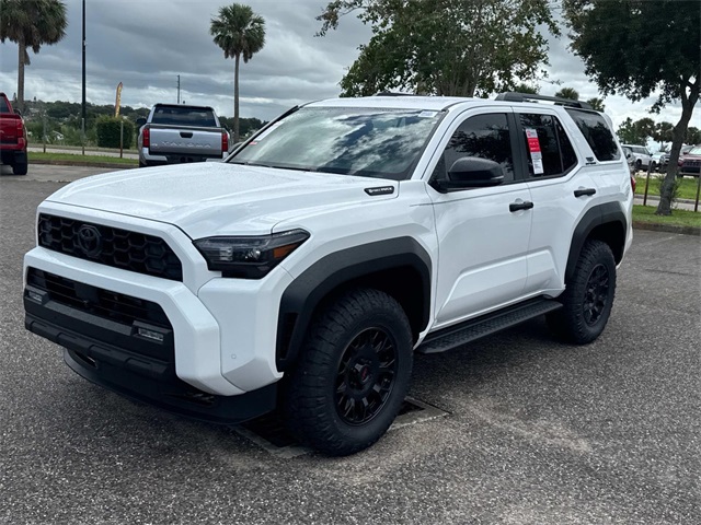 Please don't hesitate to give us a call! We value you as a customer and would love the chance to get you in this handsome 2025 Toyota 4Runner i-FORCE MAX Hybrid minutes from anywhere in Central Florida! All New Miracle Toyota vehicles come with our Complementary Ten Year 250k Mile Powertrain Warranty, includes Oil Changes, Oil Filter Replacements, and Tire Rotations, Roadside, and so much more in Benefits to YOU! 4-Wheel Disc Brakes, 8 Speakers, ABS brakes, Air Conditioning, Alloy wheels, AM/FM radio: SiriusXM, Anti-whiplash front head restraints, Apple CarPlay/Android Auto, Auto High-beam Headlights, Automatic temperature control, Brake assist, Bumpers: body-color, Driver door bin, Driver vanity mirror, Dual front impact airbags, Dual front side impact airbags, Electronic Stability Control, Emergency communication system: Safety Connect (1-year trial), Exterior Parking Camera Rear, Fabric Seat Trim, Front anti-roll bar, Front Bucket Seats, Front Center Armrest, Front dual zone A/C, Front fog lights, Front reading lights, Front wheel independent suspension, Heated door mirrors, Heated Front Bucket Seats, Illuminated entry, Knee airbag, Leather Shift Knob, Leather steering wheel, Low tire pressure warning, Occupant sensing airbag, Outside temperature display, Overhead airbag, Overhead console, Panic alarm, Passenger door bin, Passenger vanity mirror, Power door mirrors, Power steering, Power windows, Radio: 8" Audio, Rear anti-roll bar, Rear seat center armrest, Rear side impact airbag, Rear window defroster, Rear window wiper, Remote keyless entry, Security system, Speed control, Speed-sensing steering, Split folding rear seat, Spoiler, Steering wheel mounted audio controls, Tachometer, Telescoping steering wheel, Tilt steering wheel, Traction control, Trip computer, Variably intermittent wipers, and Wheels: 18" Matte-Black Painted Alloy.