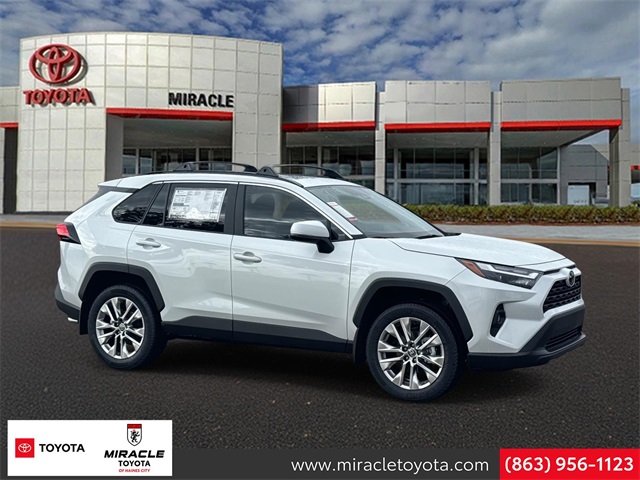 Please don't hesitate to give us a call! We value you as a customer and would love the chance to get you in this outstanding 2025 Toyota RAV4 minutes from anywhere in Central Florida! All New Miracle Toyota vehicles come with our Complementary Ten Year 250k Mile Powertrain Warranty, includes Oil Changes, Oil Filter Replacements, and Tire Rotations, Roadside, and so much more in Benefits to YOU! 3 Spoke Leather Steering Wheel, 4-Wheel Disc Brakes, 6 Speakers, ABS brakes, Air Conditioning, Alloy wheels, AM/FM radio: SiriusXM, Auto High-beam Headlights, Automatic temperature control, Brake assist, Bumpers: body-color, Delay-off headlights, Driver door bin, Driver vanity mirror, Dual front impact airbags, Dual front side impact airbags, Electronic Stability Control, Emergency communication system: Safety Connect (10-year trial), Exterior Parking Camera Rear, Four wheel independent suspension, Front anti-roll bar, Front Bucket Seats, Front Center Armrest, Front dual zone A/C, Front reading lights, Fully automatic headlights, Heated door mirrors, Illuminated entry, Knee airbag, Leather Shift Knob, Leather steering wheel, Low tire pressure warning, Occupant sensing airbag, Outside temperature display, Overhead airbag, Overhead console, Panic alarm, Passenger door bin, Passenger vanity mirror, Power door mirrors, Power driver seat, Power Liftgate, Power moonroof, Power steering, Power windows, Radio data system, Radio: AM/FM/XM Audio System, Rear anti-roll bar, Rear seat center armrest, Rear window defroster, Rear window wiper, Remote keyless entry, SofTex Seat Trim, Speed control, Speed-sensing steering, Split folding rear seat, Spoiler, Steering wheel mounted audio controls, Tachometer, Telescoping steering wheel, Tilt steering wheel, Traction control, Trip computer, Turn signal indicator mirrors, Variably intermittent wipers, and Wheels: 19" 5-Spoke Silver Alloy.