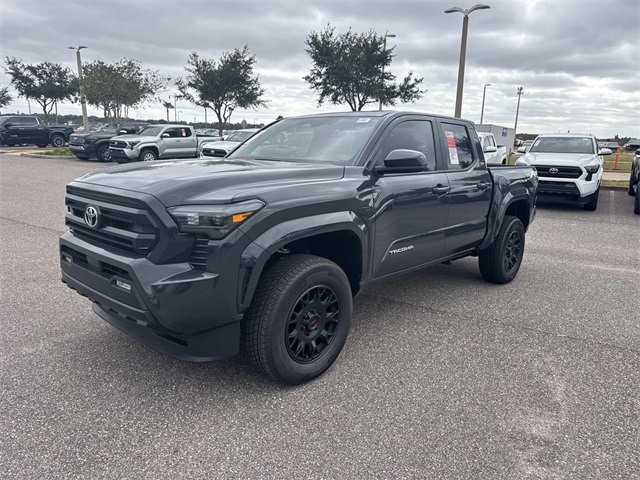 Please don't hesitate to give us a call! We value you as a customer and would love the chance to get you in this terrific-looking 2025 Toyota Tacoma minutes from anywhere in Central Florida! All New Miracle Toyota vehicles come with our Complementary Ten Year 250k Mile Powertrain Warranty, includes Oil Changes, Oil Filter Replacements, and Tire Rotations, Roadside, and so much more in Benefits to YOU! 3.583 Axle Ratio, 4-Wheel Disc Brakes, 6 Speakers, ABS brakes, Air Conditioning, Alloy wheels, AM/FM radio: SiriusXM, Anti-whiplash front head restraints, Apple CarPlay/Android Auto, Auto High-beam Headlights, Auto-dimming Rear-View mirror, Brake assist, Bumpers: body-color, Driver door bin, Dual front impact airbags, Dual front side impact airbags, Electronic Stability Control, Emergency communication system: Safety Connect (1-year trial), Exterior Parking Camera Rear, Fabric Seat Trim, Four wheel independent suspension, Front anti-roll bar, Front Bucket Seats, Front Center Armrest, Front fog lights, Front reading lights, Fully automatic headlights, Heated door mirrors, Illuminated entry, JBL Premium Audio, Knee airbag, Low tire pressure warning, Occupant sensing airbag, Outside temperature display, Overhead airbag, Overhead console, Panic alarm, Passenger door bin, Power door mirrors, Power steering, Power windows, Radio: 8" Toyota Audio Multimedia, Rear step bumper, Rear window defroster, Remote keyless entry, Speed control, Speed-sensing steering, Split folding rear seat, Steering wheel mounted audio controls, Tachometer, Telescoping steering wheel, Tilt steering wheel, Traction control, Trip computer, Variably intermittent wipers, and Wheels: 17" Styled Alloy.