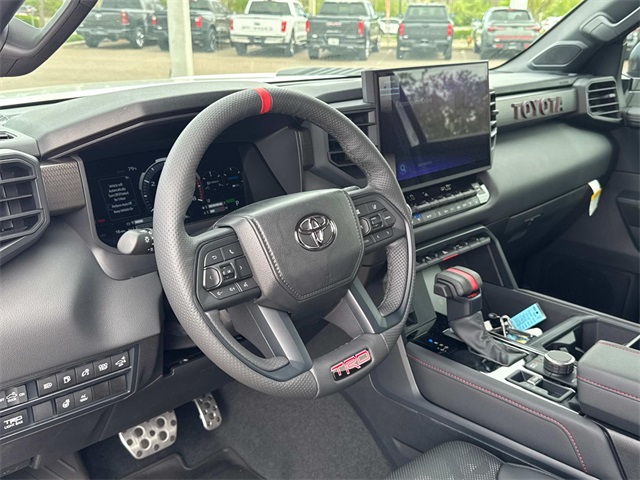Please don't hesitate to give us a call! We value you as a customer and would love the chance to get you in this fantastic 2025 Toyota Tundra Hybrid minutes from anywhere in Central Florida! All New Miracle Toyota vehicles come with our Complementary Ten Year 250k Mile Powertrain Warranty, includes Oil Changes, Oil Filter Replacements, and Tire Rotations, Roadside, and so much more in Benefits to YOU! 12 Speakers, 3.31 Axle Ratio, 4-Wheel Disc Brakes, ABS brakes, Air Conditioning, Alloy wheels, AM/FM radio: SiriusXM, Apple CarPlay/Android Auto, Auto High-beam Headlights, Auto-dimming door mirrors, Auto-dimming Rear-View mirror, Automatic temperature control, Brake assist, Bumpers: body-color, Delay-off headlights, Driver door bin, Driver vanity mirror, Dual front impact airbags, Dual front side impact airbags, Electronic Stability Control, Emergency communication system: Safety Connect (10-year trial), Exterior Parking Camera Rear, Front anti-roll bar, Front Bucket Seats, Front Center Armrest, Front dual zone A/C, Front fog lights, Front reading lights, Front wheel independent suspension, Fully automatic headlights, Garage door transmitter: HomeLink, Heated & Ventilated Front Bucket Seats, Heated door mirrors, Heated front seats, Heated steering wheel, Illuminated entry, Knee airbag, Leather Shift Knob, Leather steering wheel, Low tire pressure warning, Memory seat, Navigation System, Occupant sensing airbag, Outside temperature display, Overhead airbag, Overhead console, Panic alarm, Passenger door bin, Passenger vanity mirror, Power door mirrors, Power driver seat, Power moonroof, Power passenger seat, Power steering, Power windows, Radio data system, Radio: Premium Audio w/JBL, Rear reading lights, Rear seat center armrest, Rear step bumper, Rear window defroster, Remote keyless entry, Security system, SofTex Seat Trim, Speed control, Speed-sensing steering, Split folding rear seat, Sport steering wheel, Steering wheel mounted audio controls, Tachometer, Telescoping steering wheel, Tilt steering wheel, Traction control, Trip computer, Turn signal indicator mirrors, Variably intermittent wipers, Ventilated front seats, Voltmeter, and Wheels: 18" x 8" Black BBS Forged Aluminum.