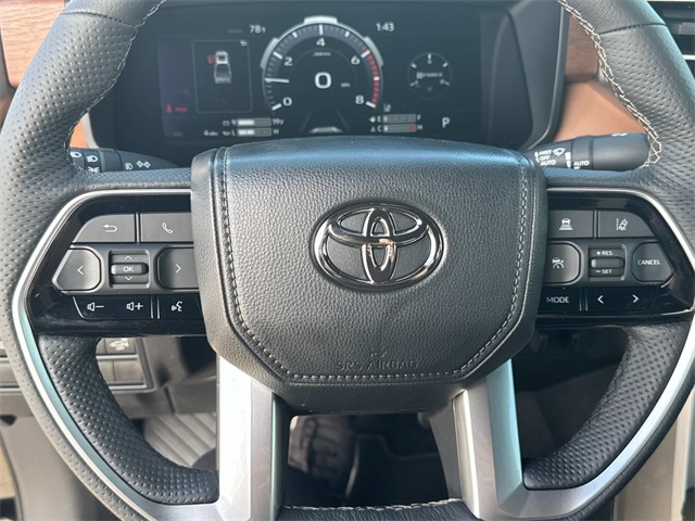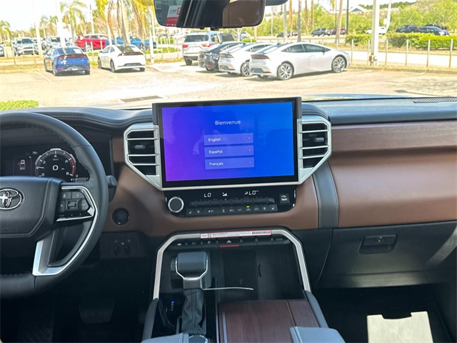 Please don't hesitate to give us a call! We value you as a customer and would love the chance to get you in this wonderful-looking 2025 Toyota Tundra minutes from anywhere in Central Florida! All New Miracle Toyota vehicles come with our Complementary Ten Year 250k Mile Powertrain Warranty, includes Oil Changes, Oil Filter Replacements, and Tire Rotations, Roadside, and so much more in Benefits to YOU! 10-Way Pwr Adj Heated and Ventilated Front Seats, 12 Speakers, 3.31 Axle Ratio, 4-Wheel Disc Brakes, ABS brakes, Air Conditioning, Alloy wheels, AM/FM radio: SiriusXM, Apple CarPlay/Android Auto, Auto High-beam Headlights, Auto-dimming door mirrors, Auto-dimming Rear-View mirror, Automatic temperature control, Brake assist, Bumpers: body-color, Chrome Exhaust Tail Pipe & Diffuser, Delay-off headlights, Driver door bin, Driver vanity mirror, Dual front impact airbags, Dual front side impact airbags, Electronic Stability Control, Emergency communication system: Safety Connect (10-year trial), Exterior Parking Camera Rear, Front anti-roll bar, Front Bucket Seats, Front Center Armrest, Front dual zone A/C, Front fog lights, Front reading lights, Front wheel independent suspension, Fully automatic headlights, Garage door transmitter: HomeLink, Heated door mirrors, Heated front seats, Heated rear seats, Heated steering wheel, Illuminated entry, Knee airbag, Leather Shift Knob, Leather steering wheel, Low tire pressure warning, Memory seat, Navigation System, Occupant sensing airbag, Outside temperature display, Overhead airbag, Overhead console, Panic alarm, Passenger door bin, Passenger vanity mirror, Power door mirrors, Power driver seat, Power moonroof, Power passenger seat, Power steering, Power windows, Premium Leather Seat Trim, Radio data system, Radio: Audio Multimedia System, Rain sensing wipers, Rear reading lights, Rear seat center armrest, Rear step bumper, Rear window defroster, Remote keyless entry, Safety Connect, Security system, Speed control, Speed-sensing steering, Split folding rear seat, Steering wheel memory, Steering wheel mounted audio controls, Tachometer, Telescoping steering wheel, Tilt steering wheel, Traction control, Trip computer, Turn signal indicator mirrors, Variably intermittent wipers, Ventilated front seats, Ventilated rear seats, Voltmeter, and Wheels: 20" Machined Finish Alloy.