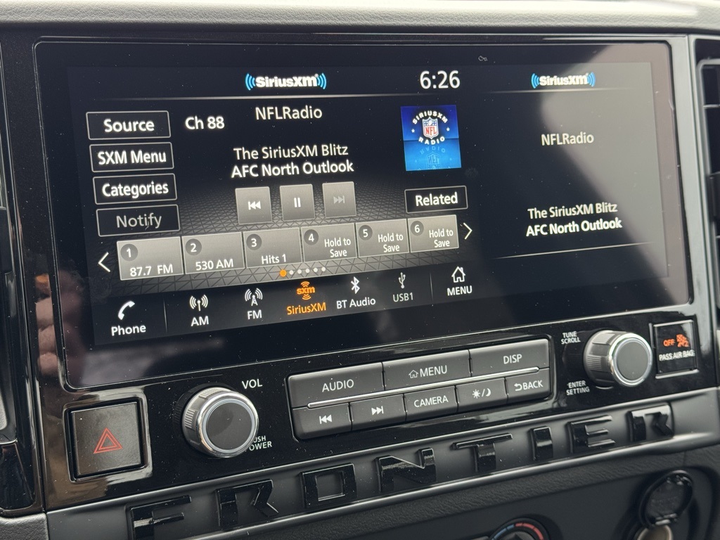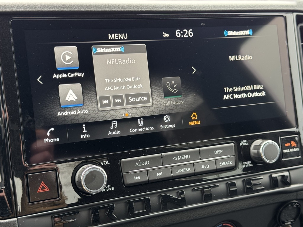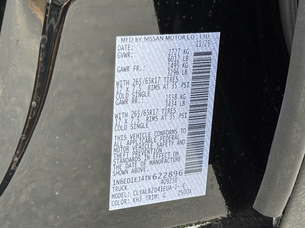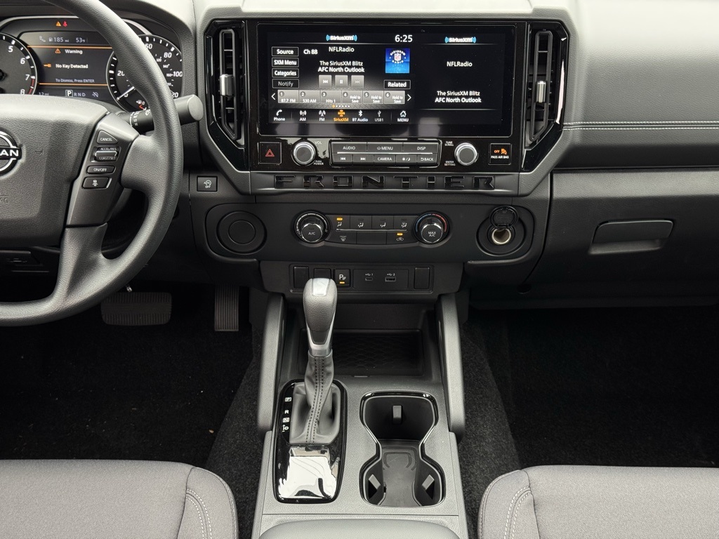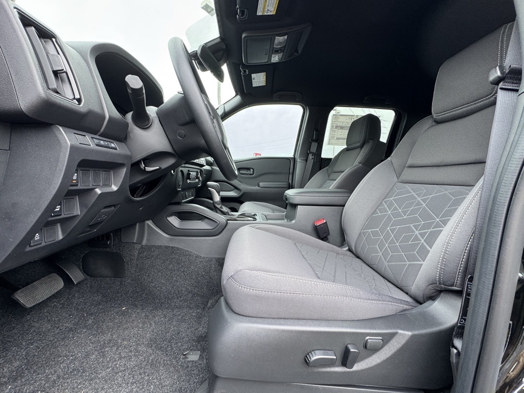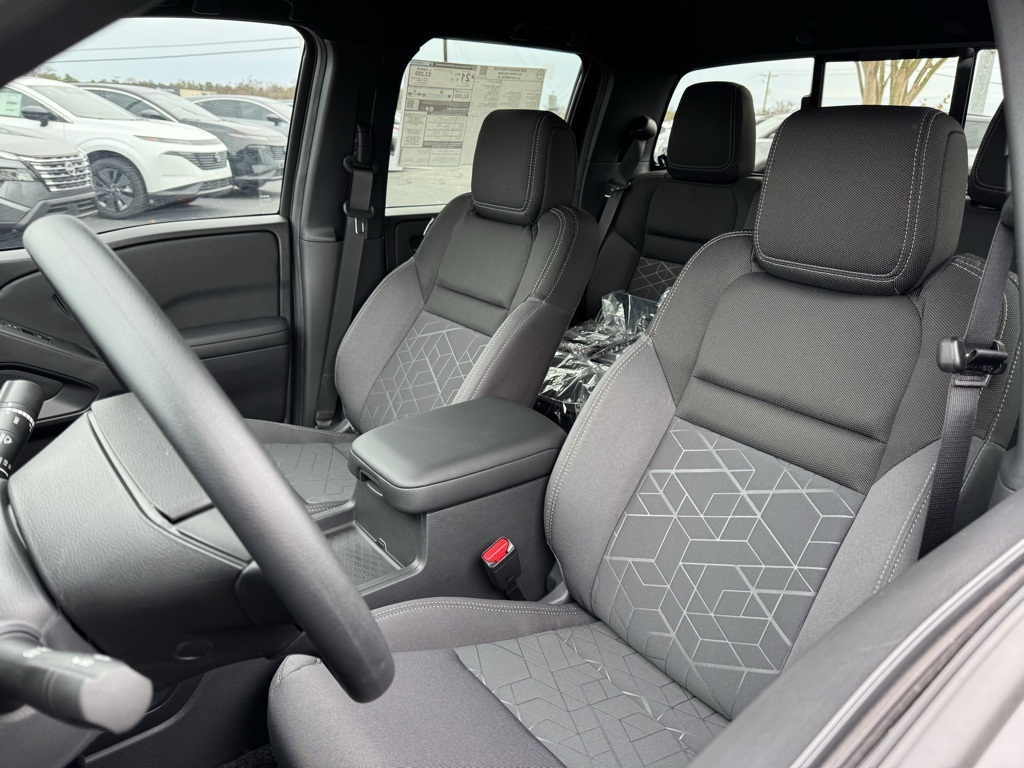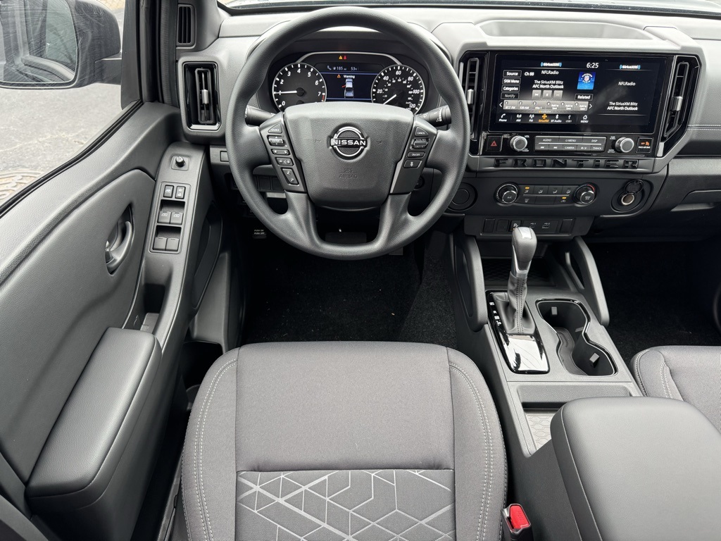 Dark Armor Package (Dark FRONTIER Tailgate Lettering, Dark Grill Surround/Mesh/Inner Fascia, Dark Mirror Caps, and Wheels: 17" Dark), Tow Package, 17" Alloy Wheels, 3.692 Axle Ratio, 4-Wheel Disc Brakes, 6 Speakers, ABS brakes, Air Conditioning, Alloy wheels, AM/FM radio: SiriusXM, Anti-whiplash front head restraints, Auto High-beam Headlights, Blind Spot Warning, Brake assist, Bumpers: body-color, Carpeted Floor Mats, Delay-off headlights, Driver door bin, Driver vanity mirror, Drop-In Bed Liner & Bumper Step, Dual front impact airbags, Dual front side impact airbags, Electronic Stability Control, Emergency communication system, Front anti-roll bar, Front Bucket Seats, Front Center Armrest, Front reading lights, Front wheel independent suspension, Fully automatic headlights, Illuminated entry, Knee airbag, Low tire pressure warning, Occupant sensing airbag, Overhead airbag, Overhead console, Panic alarm, Passenger door bin, Passenger vanity mirror, Power door mirrors, Power driver seat, Power steering, Power windows, Premium Cloth Seat Trim, Radio data system, Radio: SXM/AM/FM/AUX/USB Audio System, Rear anti-roll bar, Rear seat center armrest, Rear side impact airbag, Rear step bumper, Remote keyless entry, Security system, Speed control, Speed-sensing steering, Splash Guards, Split folding rear seat, Steering wheel mounted audio controls, Tachometer, Telescoping steering wheel, Tilt steering wheel, Tow/Haul Mode Switch, Traction control, Trip computer, Variably intermittent wipers, Voltmeter, and Wireless Apple CarPlay/Wireless Android Auto. Price includes all rebates: $2500 - Nissan Customer Cash. Exp. 01/05/2026