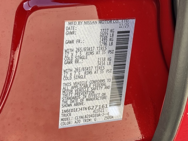 Red Alert 2026 Nissan Frontier SV RWD 9-Speed Automatic with Overdrive 3.8L DI DOHC 24V V6 This Vehicle qualifies for Complimentary 10 YEARS or 250,000 MILE LIMITED POWER TRAIN WARRANTY. HUGE VALUE! Visit dealer for complete details.