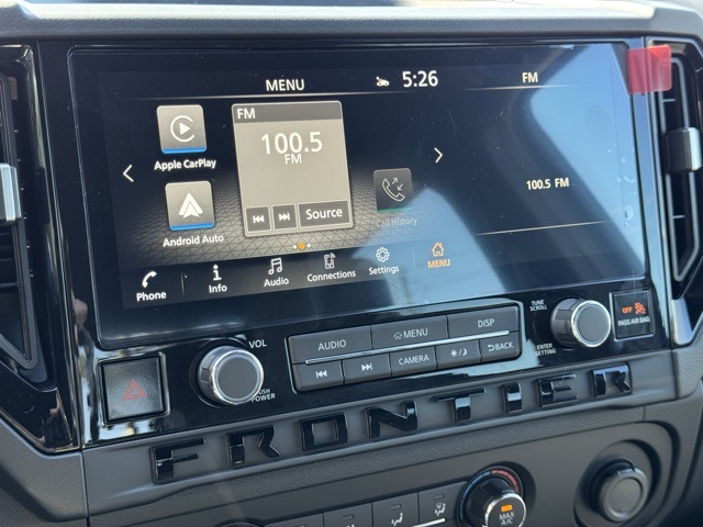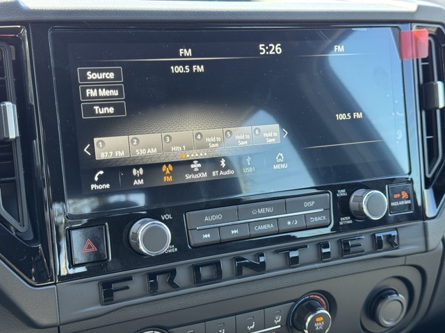 Dark Armor Package (Dark FRONTIER Tailgate Lettering, Dark Grill Surround/Mesh/Inner Fascia, Dark Mirror Caps, and Wheels: 17" Dark), Tow Package, 17" Alloy Wheels, 3.692 Axle Ratio, 4-Wheel Disc Brakes, 6 Speakers, ABS brakes, Air Conditioning, Alloy wheels, AM/FM radio: SiriusXM, Anti-whiplash front head restraints, Auto High-beam Headlights, Black Tailgate Logo Insert, Blind Spot Warning, Brake assist, Bumpers: body-color, Carpeted Floor Mats, Delay-off headlights, Driver door bin, Driver vanity mirror, Drop-In Bed Liner & Bumper Step, Dual front impact airbags, Dual front side impact airbags, Electronic Stability Control, Emergency communication system, Front anti-roll bar, Front Bucket Seats, Front Center Armrest, Front reading lights, Front wheel independent suspension, Fully automatic headlights, Illuminated entry, Knee airbag, Low tire pressure warning, Occupant sensing airbag, Overhead airbag, Overhead console, Panic alarm, Passenger door bin, Passenger vanity mirror, Power door mirrors, Power driver seat, Power steering, Power windows, Premium Cloth Seat Trim, Radio data system, Radio: SXM/AM/FM/AUX/USB Audio System, Rear anti-roll bar, Rear seat center armrest, Rear side impact airbag, Rear step bumper, Remote keyless entry, Security system, Speed control, Speed-sensing steering, Splash Guards, Split folding rear seat, Steering wheel mounted audio controls, Tachometer, Telescoping steering wheel, Tilt steering wheel, Tow/Haul Mode Switch, Traction control, Trip computer, Variably intermittent wipers, Voltmeter, and Wireless Apple CarPlay/Wireless Android Auto. Price includes dealer added accessories.
