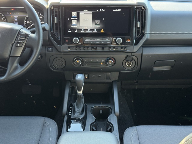 Dark Armor Package (Dark FRONTIER Tailgate Lettering, Dark Grill Surround/Mesh/Inner Fascia, Dark Mirror Caps, and Wheels: 17" Dark), Tow Package, 17" Alloy Wheels, 3.692 Axle Ratio, 4-Wheel Disc Brakes, 6 Speakers, ABS brakes, Air Conditioning, Alloy wheels, AM/FM radio: SiriusXM, Anti-whiplash front head restraints, Auto High-beam Headlights, Black Tailgate Logo Insert, Blind Spot Warning, Brake assist, Bumpers: body-color, Carpeted Floor Mats, Delay-off headlights, Driver door bin, Driver vanity mirror, Drop-In Bed Liner & Bumper Step, Dual front impact airbags, Dual front side impact airbags, Electronic Stability Control, Emergency communication system, Front anti-roll bar, Front Bucket Seats, Front Center Armrest, Front reading lights, Front wheel independent suspension, Fully automatic headlights, Illuminated entry, Knee airbag, Low tire pressure warning, Occupant sensing airbag, Overhead airbag, Overhead console, Panic alarm, Passenger door bin, Passenger vanity mirror, Power door mirrors, Power driver seat, Power steering, Power windows, Premium Cloth Seat Trim, Radio data system, Radio: SXM/AM/FM/AUX/USB Audio System, Rear anti-roll bar, Rear seat center armrest, Rear side impact airbag, Rear step bumper, Remote keyless entry, Security system, Speed control, Speed-sensing steering, Splash Guards, Split folding rear seat, Steering wheel mounted audio controls, Tachometer, Telescoping steering wheel, Tilt steering wheel, Tow/Haul Mode Switch, Traction control, Trip computer, Variably intermittent wipers, Voltmeter, and Wireless Apple CarPlay/Wireless Android Auto. Price includes dealer added accessories.