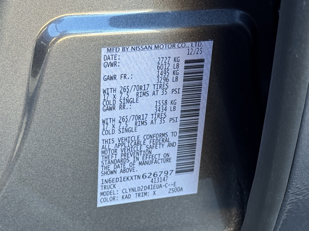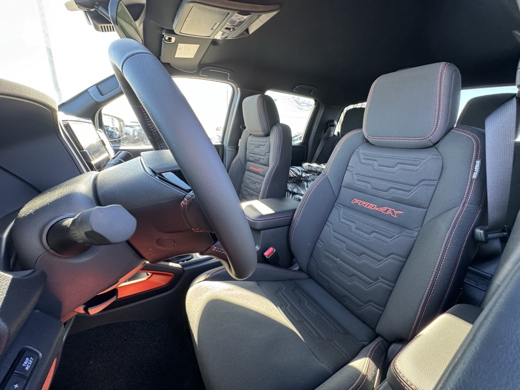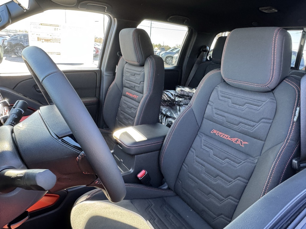 PRO-4X Convenience Package, 4WD, 17" Painted Alloy Wheels, 3.692 Axle Ratio, 4-Wheel Disc Brakes, 6 Speakers, ABS brakes, Air Conditioning, Alloy wheels, AM/FM radio: SiriusXM, Anti-whiplash front head restraints, Auto High-beam Headlights, Automatic temperature control, Blind Spot Warning, Brake assist, Bumpers: body-color, Delay-off headlights, Driver door bin, Driver vanity mirror, Dual front impact airbags, Dual front side impact airbags, Electronic Stability Control, Electronic Tailgate Lock, Emergency communication system, Essentials Kit, Front anti-roll bar, Front Bucket Seats, Front Center Armrest, Front dual zone A/C, Front fog lights, Front reading lights, Front wheel independent suspension, Fully automatic headlights, Heated Front Bucket Seats, Heated front seats, Heated steering wheel, Illuminated entry, Knee airbag, Leather steering wheel, Low tire pressure warning, Mud Flaps, Occupant sensing airbag, Off-Road Style Step Rails, Overhead airbag, Overhead console, Panic alarm, Passenger door bin, Passenger vanity mirror, Power door mirrors, Power driver seat, Power passenger seat, Power steering, Power windows, PRO Embroidered Premium Cloth Seat Trim, Radio data system, Radio: SXM/AM/FM/AUX/USB Audio System, Rear anti-roll bar, Rear seat center armrest, Rear side impact airbag, Rear step bumper, Remote keyless entry, Security system, Speed control, Speed-sensing steering, Split folding rear seat, Steering wheel mounted audio controls, Tachometer, Telescoping steering wheel, Tilt steering wheel, Traction control, Trip computer, Variably intermittent wipers, Voltmeter, and Wireless Apple CarPlay/Wireless Android Auto. Price includes all rebates: $2500 - Nissan Customer Cash. Exp. 01/05/2026