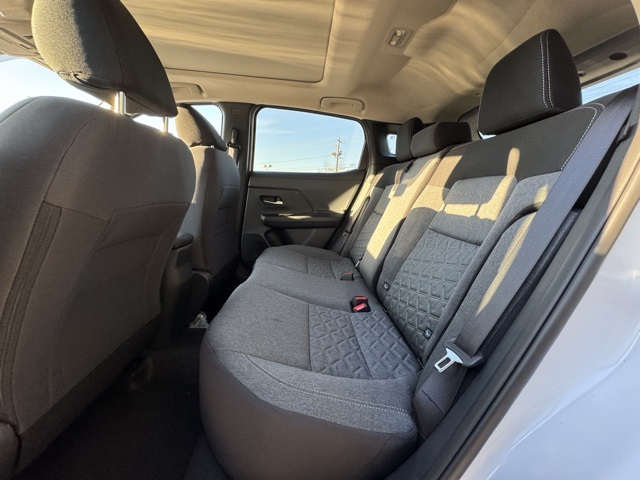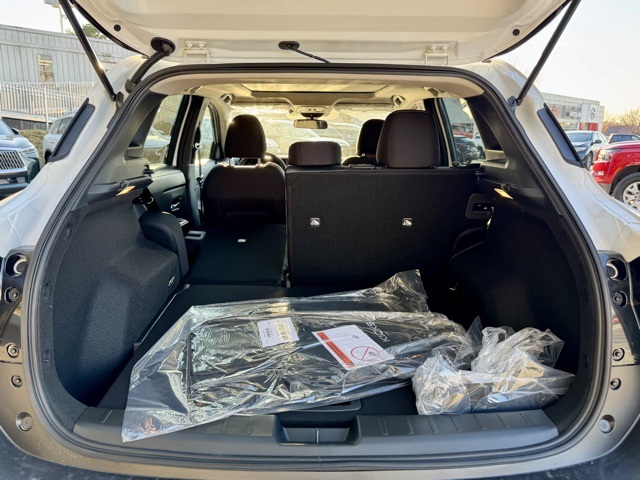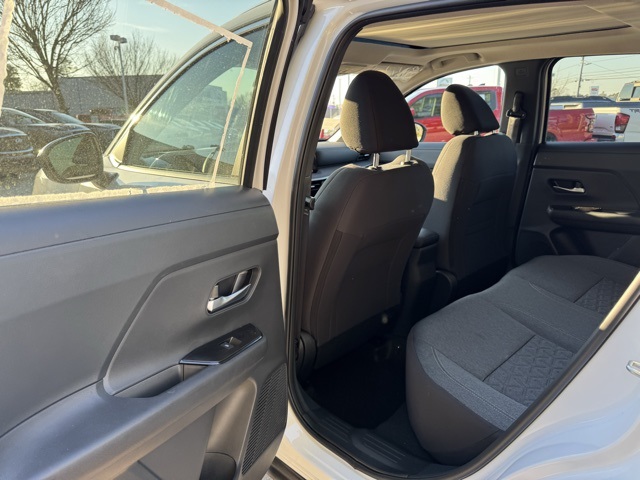 Cold Weather Package (Heated Front Seats, Heated Mirrors, and Rear Floor Heater Ducts), SV Premium Package (Illuminated Driver & Passenger Sun Visors, Panoramic Moonroof, and Sunglass Holder), 4 Speakers, 4-Wheel Disc Brakes, ABS brakes, Air Conditioning, AM/FM radio, Auto High-beam Headlights, Automatic temperature control, Blind Spot Warning, Brake assist, Bumpers: body-color, Carpeted Floor Mats & Underfloor Protector, Cloth Seat Trim, Crossbars, Driver door bin, Driver vanity mirror, Dual front impact airbags, Dual front side impact airbags, Electronic Stability Control, Emergency communication system, Exterior Parking Camera Rear, Front anti-roll bar, Front Bucket Seats, Front Center Armrest, Front reading lights, Front wheel independent suspension, Fully automatic headlights, Illuminated entry, Knee airbag, Low tire pressure warning, NissanConnect featuring Apple CarPlay and Android Auto, Occupant sensing airbag, Outside temperature display, Overhead airbag, Panic alarm, Passenger door bin, Passenger vanity mirror, Power door mirrors, Power steering, Power windows, Radio data system, Radio: AM/FM/SiriusXM Audio System, Rear anti-roll bar, Rear reading lights, Rear side impact airbag, Rear window defroster, Rear window wiper, Remote keyless entry, Security system, Speed control, Speed-sensing steering, Splash Guards, Split folding rear seat, Spoiler, Sport steering wheel, Steering wheel mounted audio controls, Tachometer, Telescoping steering wheel, Tilt steering wheel, Traction control, Trip computer, Variably intermittent wipers, and Wheels: 17" Steel Flex w/Full Covers. Price includes dealer added accessories.