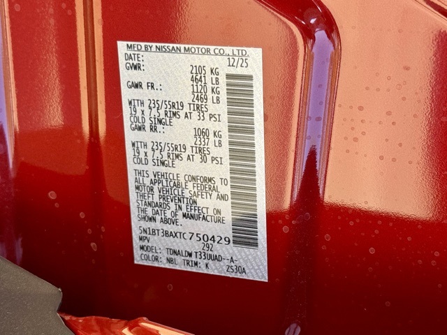 4-Wheel Disc Brakes, 6 Speakers, ABS brakes, Air Conditioning, Alloy wheels, AM/FM radio: Sirius, Apple CarPlay/Android Auto, Auto High-beam Headlights, Automatic temperature control, Black Splash Guards (Set of 4) (B92), Brake assist, Bumpers: body-color, Cloth Seat Trim w/Patterned Inserts, Delay-off headlights, Driver door bin, Driver vanity mirror, Dual front impact airbags, Dual front side impact airbags, Electronic Stability Control, Emergency communication system: NissanConnect Services, First Aid Kit, Floor Mats w/1-Piece Cargo Area Protector, Four wheel independent suspension, Front anti-roll bar, Front Bucket Seats, Front Center Armrest, Front dual zone A/C, Front reading lights, Fully automatic headlights, Heated door mirrors, Illuminated entry, Knee airbag, Low tire pressure warning, Occupant sensing airbag, Outside temperature display, Overhead airbag, Overhead console, Panic alarm, Passenger door bin, Passenger vanity mirror, Power door mirrors, Power driver seat, Power Liftgate, Power steering, Power windows, Premium Paint, Radio data system, Radio: AM/FM NissanConnect, Rear anti-roll bar, Rear seat center armrest, Rear side impact airbag, Rear window defroster, Rear window wiper, Remote keyless entry, Speed control, Speed-sensing steering, Speed-Sensitive Wipers, Split folding rear seat, Spoiler, Steering wheel mounted audio controls, Tachometer, Telescoping steering wheel, Tilt steering wheel, Traction control, Trip computer, USB Charging Cable Set, Variably intermittent wipers, and Wheels: 18" Dark Painted Machine Finished Alloy. Price includes dealer added accessories.