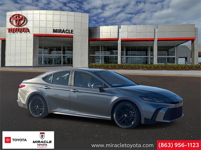 Please don't hesitate to give us a call! We value you as a customer and would love the chance to get you in this fantastic 2026 Toyota Camry minutes from anywhere in Central Florida! All New Miracle Toyota vehicles come with our Complementary Ten Year 250k Mile Powertrain Warranty, includes Oil Changes, Oil Filter Replacements, and Tire Rotations, Roadside, and so much more in Benefits to YOU! 4-Wheel Disc Brakes, 6 Speakers, ABS brakes, Air Conditioning, Alloy wheels, AM/FM radio: SiriusXM, Apple CarPlay/Android Auto, Auto High-beam Headlights, Automatic temperature control, Brake assist, Bumpers: body-color, Delay-off headlights, Driver door bin, Driver vanity mirror, Dual front impact airbags, Dual front side impact airbags, Electronic Stability Control, Emergency communication system: Safety Connect (5-year trial), Exterior Parking Camera Rear, Four wheel independent suspension, Front anti-roll bar, Front Bucket Seats, Front Center Armrest, Front dual zone A/C, Front reading lights, Front Seats, Fully automatic headlights, Heated door mirrors, Heated Front Seats, Illuminated entry, Knee airbag, Leather Shift Knob, Leather steering wheel, Low tire pressure warning, Occupant sensing airbag, Outside temperature display, Overhead airbag, Overhead console, Panic alarm, Passenger door bin, Passenger vanity mirror, Power door mirrors, Power driver seat, Power steering, Power windows, Radio data system, Radio: 12.3" Toyota Multimedia Audio, Radio: 8" Toyota Audio Multimedia, Rear anti-roll bar, Rear reading lights, Rear seat center armrest, Rear window defroster, Remote keyless entry, Security system, SofTex and Fabric Seat Trim, Speed control, Speed-sensing steering, Split folding rear seat, Spoiler, Steering wheel mounted audio controls, Telescoping steering wheel, Tilt steering wheel, Traction control, Trip computer, Turn signal indicator mirrors, Variably intermittent wipers, and Wheels: 18" Multi-Spoke Black-Finished Alloy.