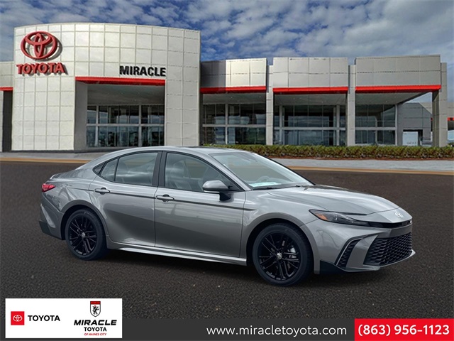 Please don't hesitate to give us a call! We value you as a customer and would love the chance to get you in this handsome 2026 Toyota Camry minutes from anywhere in Central Florida! All New Miracle Toyota vehicles come with our Complementary Ten Year 250k Mile Powertrain Warranty, includes Oil Changes, Oil Filter Replacements, and Tire Rotations, Roadside, and so much more in Benefits to YOU! 4-Wheel Disc Brakes, 6 Speakers, ABS brakes, Air Conditioning, Alloy wheels, AM/FM radio: SiriusXM, Apple CarPlay/Android Auto, Auto High-beam Headlights, Automatic temperature control, Brake assist, Bumpers: body-color, Delay-off headlights, Driver door bin, Driver vanity mirror, Dual front impact airbags, Dual front side impact airbags, Electronic Stability Control, Emergency communication system: Safety Connect (5-year trial), Exterior Parking Camera Rear, Four wheel independent suspension, Front anti-roll bar, Front Bucket Seats, Front Center Armrest, Front dual zone A/C, Front reading lights, Front Seats, Fully automatic headlights, Heated door mirrors, Heated Front Seats, Illuminated entry, Knee airbag, Leather Shift Knob, Leather steering wheel, Low tire pressure warning, Occupant sensing airbag, Outside temperature display, Overhead airbag, Overhead console, Panic alarm, Passenger door bin, Passenger vanity mirror, Power door mirrors, Power driver seat, Power steering, Power windows, Radio data system, Radio: 12.3" Toyota Multimedia Audio, Radio: 8" Toyota Audio Multimedia, Rear anti-roll bar, Rear reading lights, Rear seat center armrest, Rear window defroster, Remote keyless entry, Security system, SofTex and Fabric Seat Trim, Speed control, Speed-sensing steering, Split folding rear seat, Spoiler, Steering wheel mounted audio controls, Telescoping steering wheel, Tilt steering wheel, Traction control, Trip computer, Turn signal indicator mirrors, Variably intermittent wipers, and Wheels: 18" Multi-Spoke Black-Finished Alloy.
