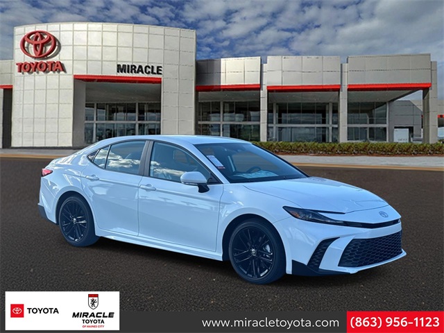 Please don't hesitate to give us a call! We value you as a customer and would love the chance to get you in this outstanding 2026 Toyota Camry minutes from anywhere in Central Florida! All New Miracle Toyota vehicles come with our Complementary Ten Year 250k Mile Powertrain Warranty, includes Oil Changes, Oil Filter Replacements, and Tire Rotations, Roadside, and so much more in Benefits to YOU! 4-Wheel Disc Brakes, 6 Speakers, ABS brakes, Air Conditioning, Alloy wheels, AM/FM radio: SiriusXM, Apple CarPlay/Android Auto, Auto High-beam Headlights, Automatic temperature control, Brake assist, Bumpers: body-color, Delay-off headlights, Driver door bin, Driver vanity mirror, Dual front impact airbags, Dual front side impact airbags, Electronic Stability Control, Emergency communication system: Safety Connect (5-year trial), Exterior Parking Camera Rear, Four wheel independent suspension, Front anti-roll bar, Front Bucket Seats, Front Center Armrest, Front dual zone A/C, Front reading lights, Front Seats, Fully automatic headlights, Heated door mirrors, Heated Front Seats, Illuminated entry, Knee airbag, Leather Shift Knob, Leather steering wheel, Low tire pressure warning, Occupant sensing airbag, Outside temperature display, Overhead airbag, Overhead console, Panic alarm, Passenger door bin, Passenger vanity mirror, Power door mirrors, Power driver seat, Power steering, Power windows, Radio data system, Radio: 12.3" Toyota Multimedia Audio, Radio: 8" Toyota Audio Multimedia, Rear anti-roll bar, Rear reading lights, Rear seat center armrest, Rear window defroster, Remote keyless entry, Security system, SofTex and Fabric Seat Trim, Speed control, Speed-sensing steering, Split folding rear seat, Spoiler, Steering wheel mounted audio controls, Telescoping steering wheel, Tilt steering wheel, Traction control, Trip computer, Turn signal indicator mirrors, Variably intermittent wipers, and Wheels: 18" Multi-Spoke Black-Finished Alloy.