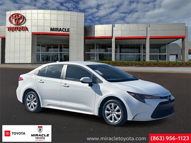 Please don't hesitate to give us a call! We value you as a customer and would love the chance to get you in this outstanding 2026 Toyota Corolla minutes from anywhere in Central Florida! All New Miracle Toyota vehicles come with our Complementary Ten Year 250k Mile Powertrain Warranty, includes Oil Changes, Oil Filter Replacements, and Tire Rotations, Roadside, and so much more in Benefits to YOU! 4-Wheel Disc Brakes, 6 Speakers, ABS brakes, Air Conditioning, AM/FM radio: SiriusXM, Apple CarPlay/Android Auto, Auto High-beam Headlights, Automatic temperature control, Brake assist, Bumpers: body-color, Delay-off headlights, Driver door bin, Driver vanity mirror, Dual front impact airbags, Dual front side impact airbags, Electronic Stability Control, Emergency communication system: Safety Connect (up to 10-year trial subscription), Exterior Parking Camera Rear, Fabric Seat Trim, Front anti-roll bar, Front Bucket Seats, Front Center Armrest, Front reading lights, Front wheel independent suspension, Fully automatic headlights, Heated door mirrors, Illuminated entry, Knee airbag, Low tire pressure warning, Occupant sensing airbag, Outside temperature display, Overhead airbag, Panic alarm, Passenger door bin, Passenger vanity mirror, Power door mirrors, Power steering, Power windows, Radio data system, Radio: 8" Toyota Audio Multimedia, Rear anti-roll bar, Rear seat center armrest, Rear side impact airbag, Rear window defroster, Remote keyless entry, Speed control, Split folding rear seat, Steering wheel mounted audio controls, Tachometer, Telescoping steering wheel, Tilt steering wheel, Traction control, Trip computer, and Wheels: 16" Steel with Covers.