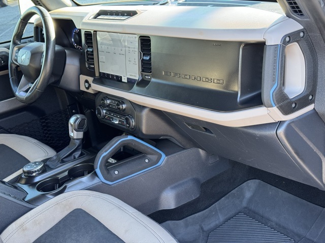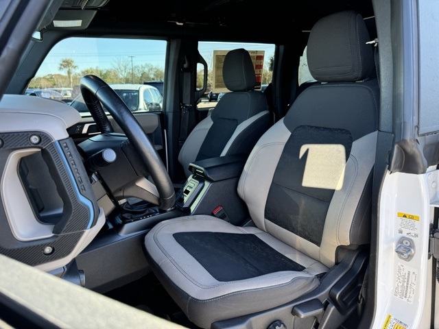 Miracle Toyota of North Augusta is pumped up to offer this charming 2023 Ford Bronco in Oxford White This vehicle has passed our comprehensive inspection and comes with the following ABS brakes, Compass, Electronic Stability Control, Heated door mirrors, Illuminated entry, Low tire pressure warning, Remote keyless entry, Traction control, 4-Wheel Disc Brakes, 7 Speakers, Air Conditioning, AM/FM radio: SiriusXM with 360L, AM/FM Stereo, Auto High-beam Headlights, Brake assist, Delay-off headlights, Driver door bin, Driver vanity mirror, Dual front impact airbags, Dual front side impact airbags, Emergency communication system: 911 Assist, Exterior Parking Camera Rear, Front anti-roll bar, Front Bucket Seats, Front Center Armrest, Front reading lights, Front wheel independent suspension, Fully automatic headlights, Integrated roll-over protection, Occupant sensing airbag, Outside temperature display, Overhead airbag, Overhead console, Panic alarm, Passenger door bin, Passenger vanity mirror, Power door mirrors, Power steering, Power windows, Radio data system, Security system, SiriusXM Radio w/360L, Speed control, Split folding rear seat, Steering wheel mounted audio controls, SYNC 4, Tachometer, Telescoping steering wheel, Tilt steering wheel, Trip computer, and Variably intermittent wipers;