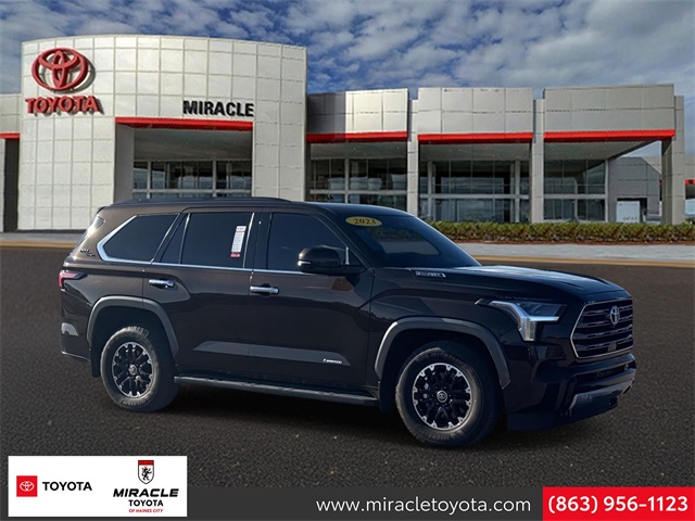 Miracle Toyota is proud to offer this great 2023 Toyota Sequoia in Smoked Mesquite. This vehicle has passed our comprehensive inspection and comes with the following features; ABS brakes, Active Cruise Control, Alloy wheels, Electronic Stability Control, Front dual zone A/C, Heated & Ventilated Front Seats, Heated door mirrors, Heated front seats, Illuminated entry, Low tire pressure warning, Navigation System, Power Liftgate, Power moonroof, Remote keyless entry, Traction control. 2023 Toyota Sequoia Limited TRD Off-Road 4D Sport Utility V6 Hybrid Motor.