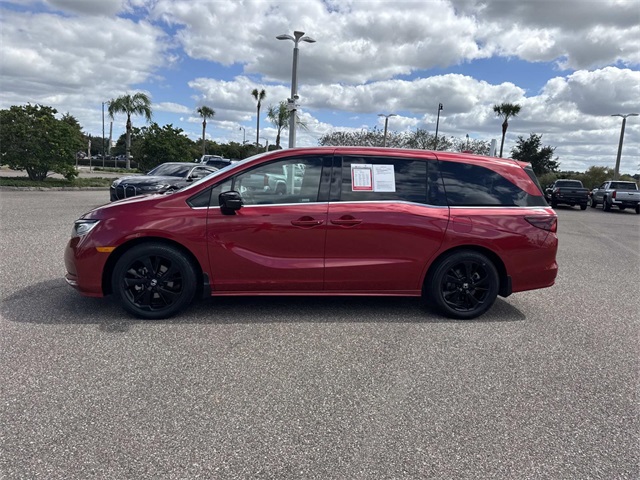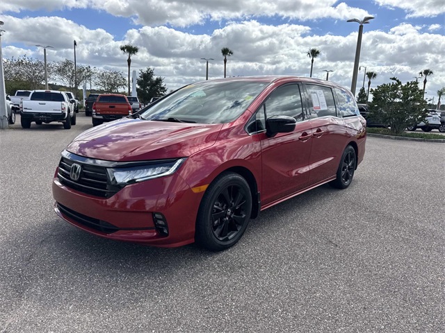 Safety and confidence come standard with Honda Sensing, featuring Adaptive Cruise Control, Collision Mitigation Braking System, Road Departure Mitigation, and Lane Keeping Assist. Additional highlights include a hands-free power tailgate, remote engine start, and blind spot information system with cross traffic monitor. Blending premium comfort, family-friendly practicality, and a dynamic look, this 2024 Honda Odyssey Sport in Radiant Red Metallic offers the reliability and refinement Honda is known for, ready for countless miles of family adventures ahead.